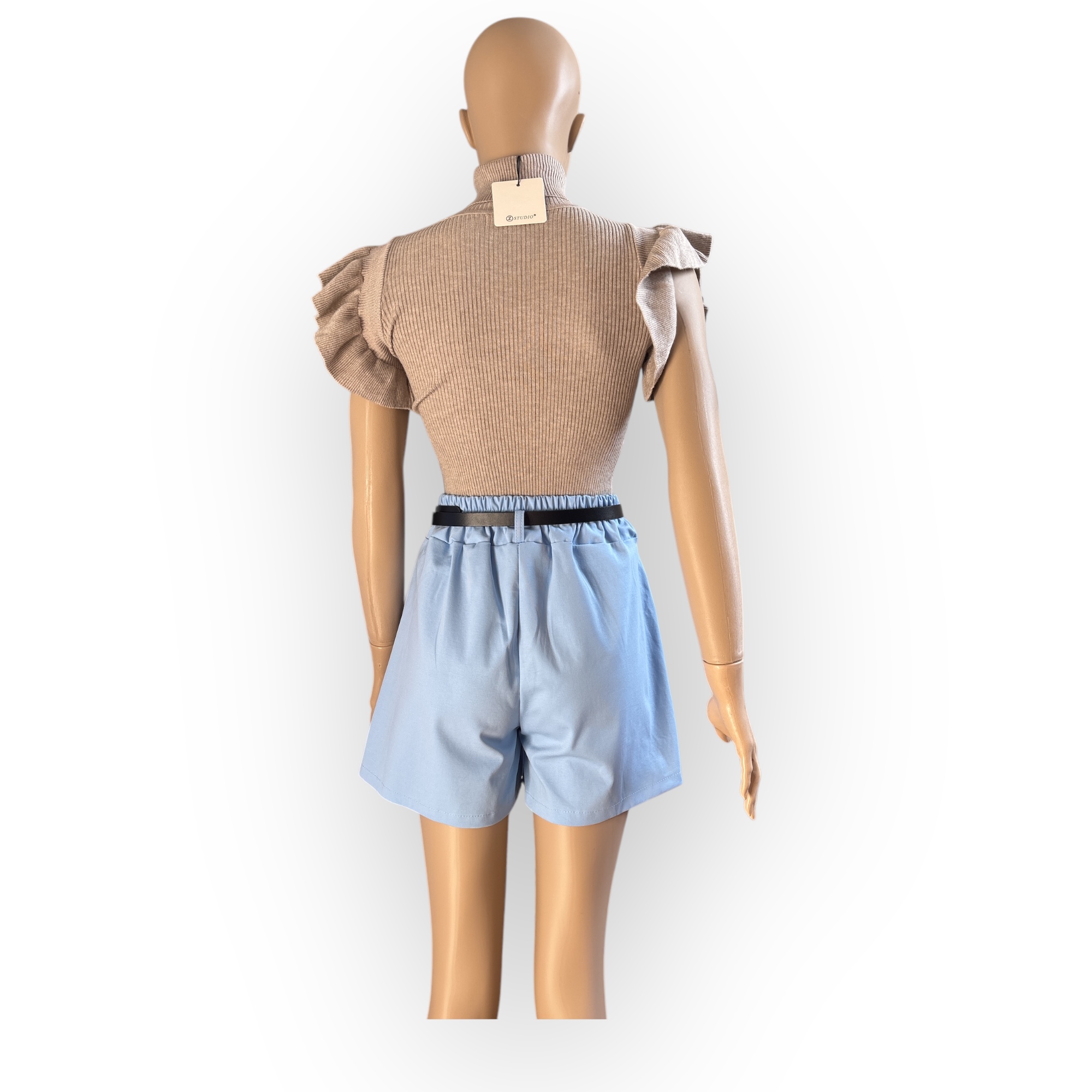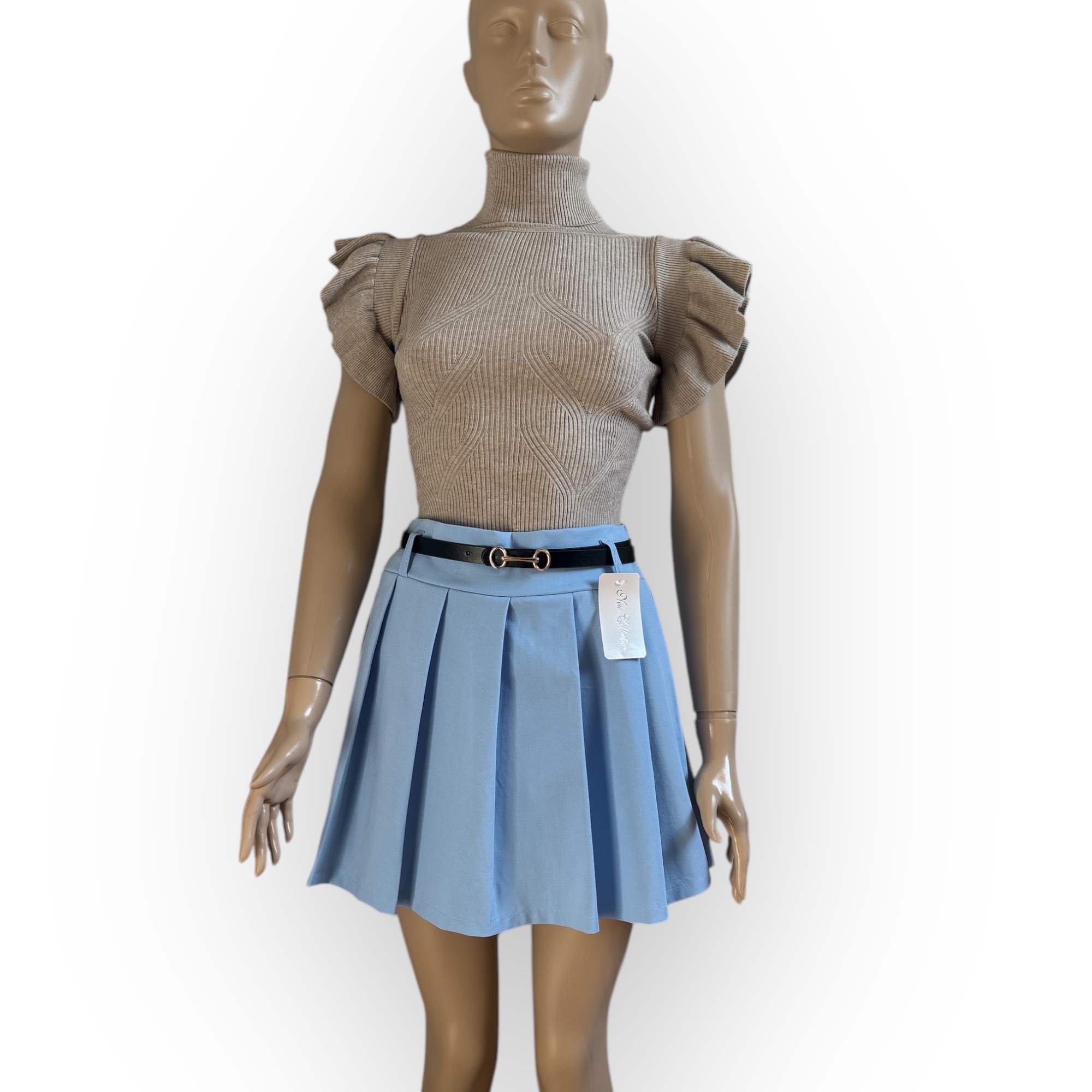 Babakék rakott szoknyanadrág övvel.