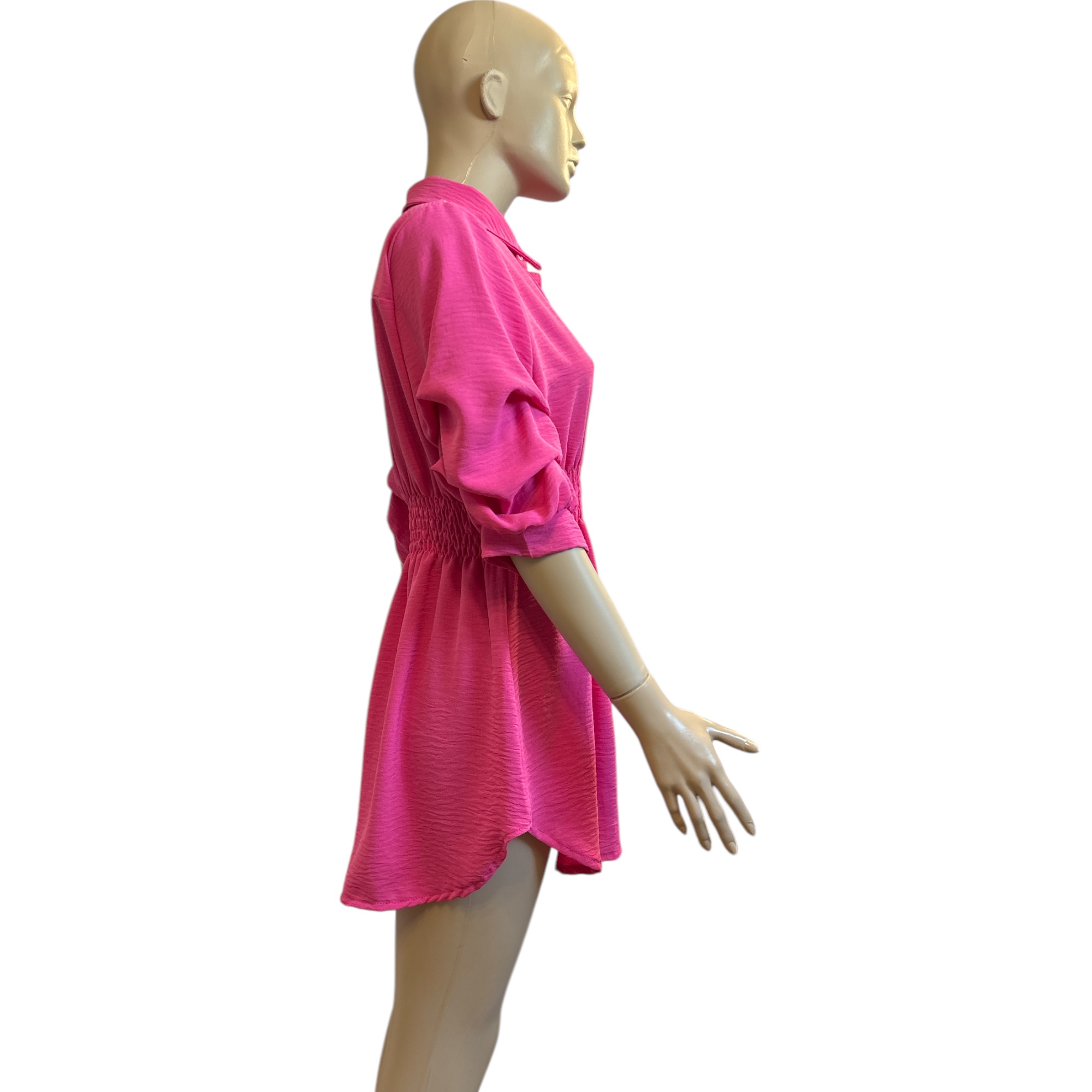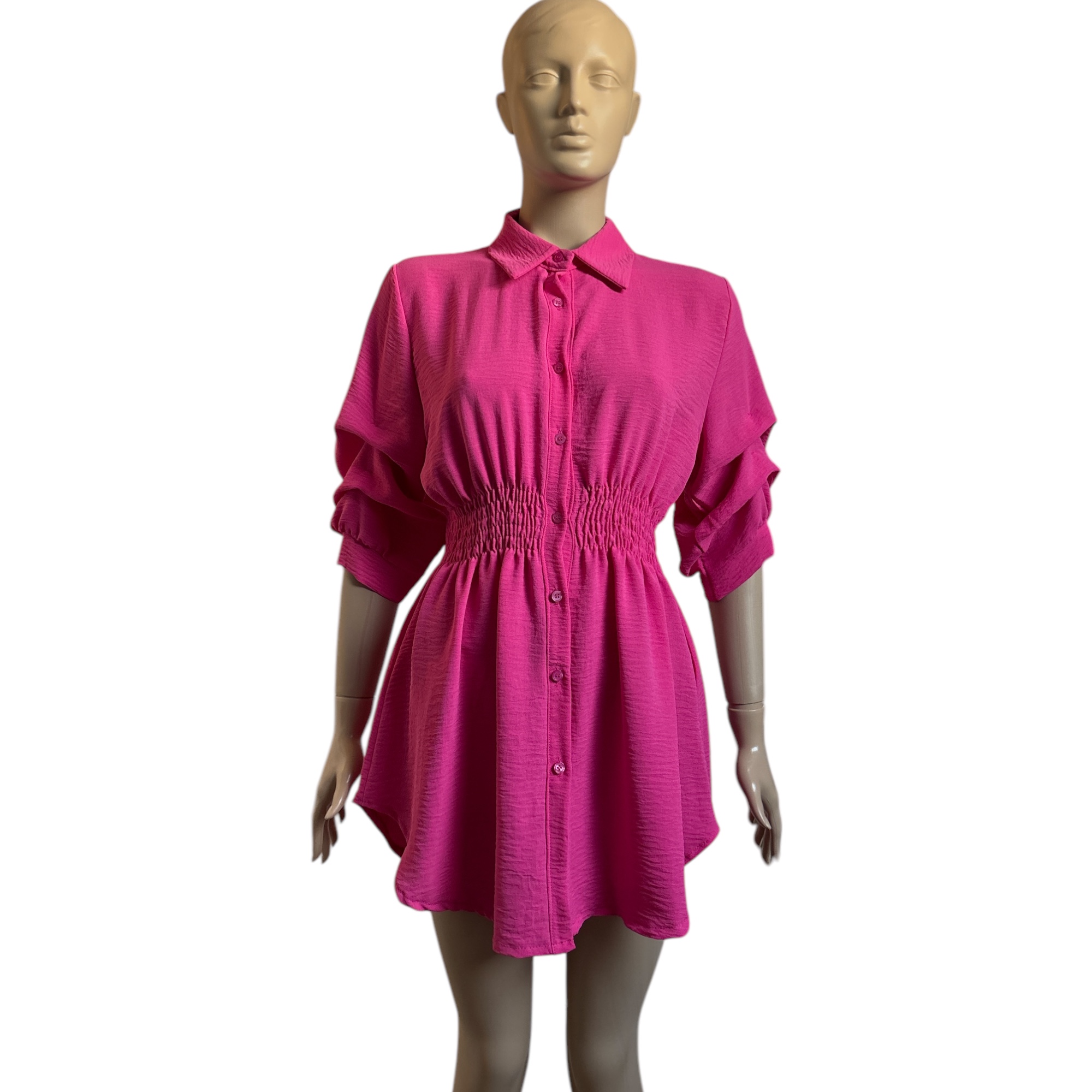 Gombos húzott derekú galléros női ruha
